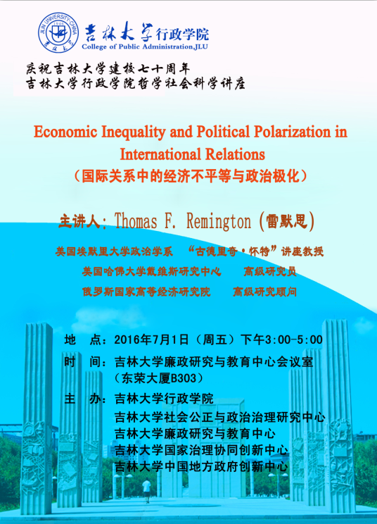 庆祝麻豆 建校七十周年麻豆 哲学社会科学名家讲座(一)--国际关系中的经济不平等与政治极化