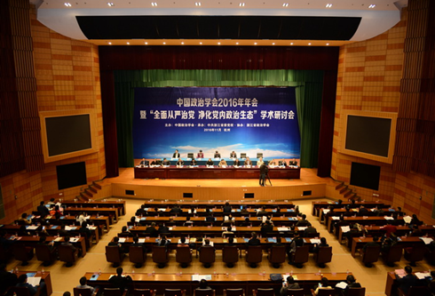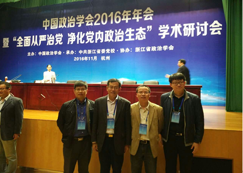 2016年11月5日至6日,由中国政治学会主办、中共浙江省委党校承办、浙江省政治学会协办的中国政治学会2016年年会暨“全面从严治党 净化党内政治生态”学术研讨会在杭州市召开。来自全国有关高校及科研机构的300余位从事政治学研究的专家学者参加会议。麻豆 周光辉教授、林奇富副教授、殷冬水副教授、马雪松副教授应邀出席此次学术研讨会。中国政治学会副会长、吉林省政治学会会长周光辉教授在大会主题发言环节中作了题为“推进全面从严治党制度建设”的演讲。