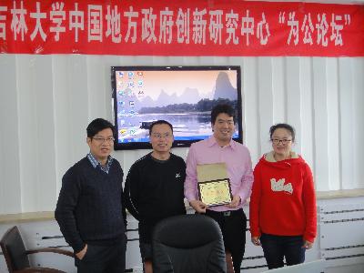 中国地方政府创新研究中心副主任宋艳副教授向饶博士赠送了“为公论坛”主讲嘉宾的纪念品。