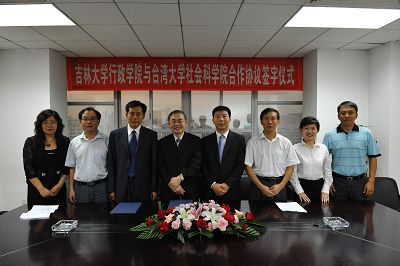 与台湾大学社会科学学院合作协议签字仪式在东荣大厦十二楼会议室举行。台湾大学社会科学院院长赵永茂教授与麻豆
