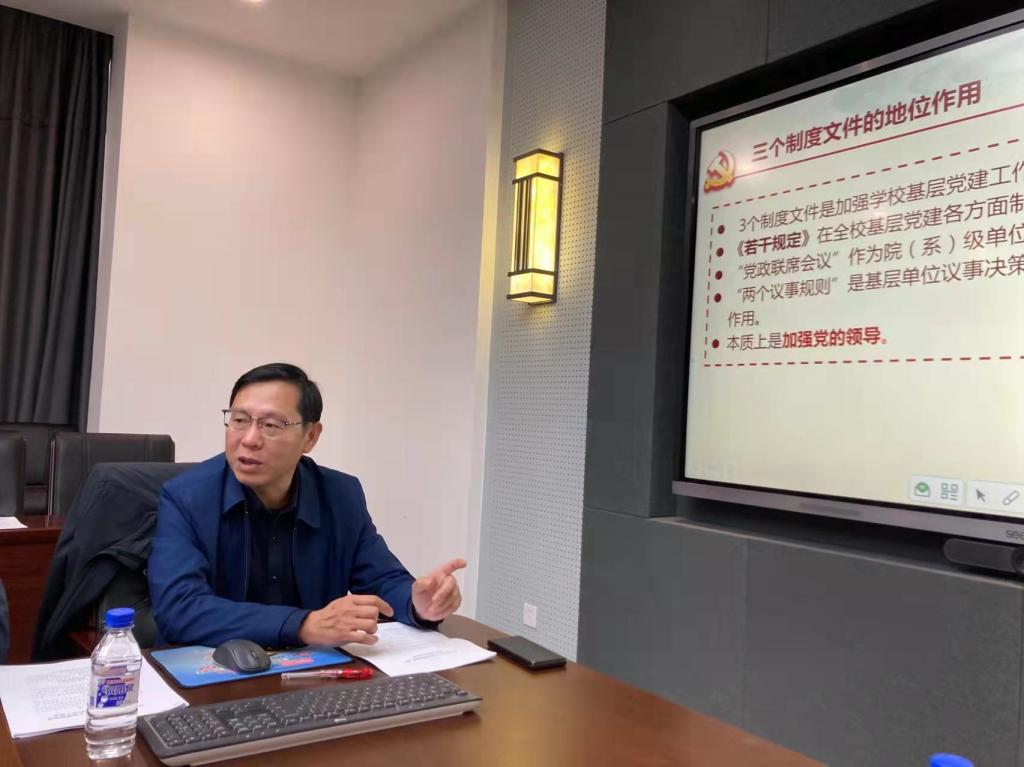 徐仁元围绕学校党委印发的《若干规定》和“两个议事规则”3个基层党建制度文件进行了专题辅导,从制度的修订背景、政策依据、思路逻辑、结构框架、新增条款等方面进行了宣讲解读,并结合基层党建工作中的典型案例作了问题分析,阐明了3个基层党建制度文件对院级党组织建设的指导意义,引导与会同志正确认识3个基层党建制度文件的地位作用,增强了从严治党、制度治党与依规治党的政治自觉、思想自觉和行动自觉。