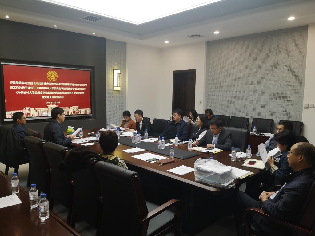 委员会学院党政联席会议议事规则》(以下简称“两个议事规则”)及相关制度文件。会议邀请学校党委组织部徐仁元副部长做专题培训讲座,学院党委委员、纪委委员、班子成员、各系主任、党支部委员参加集体培训。培训会由党委书记马景惠主持。