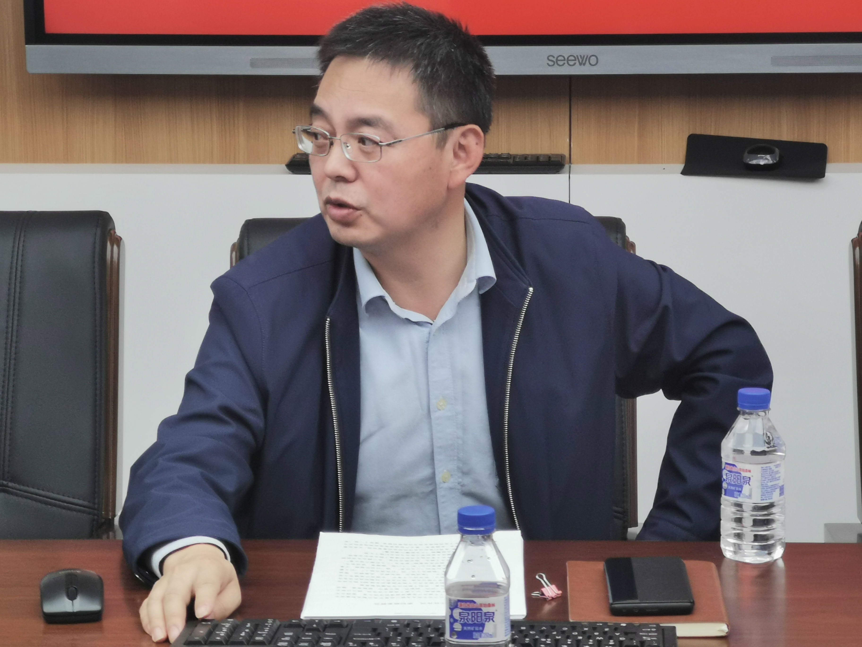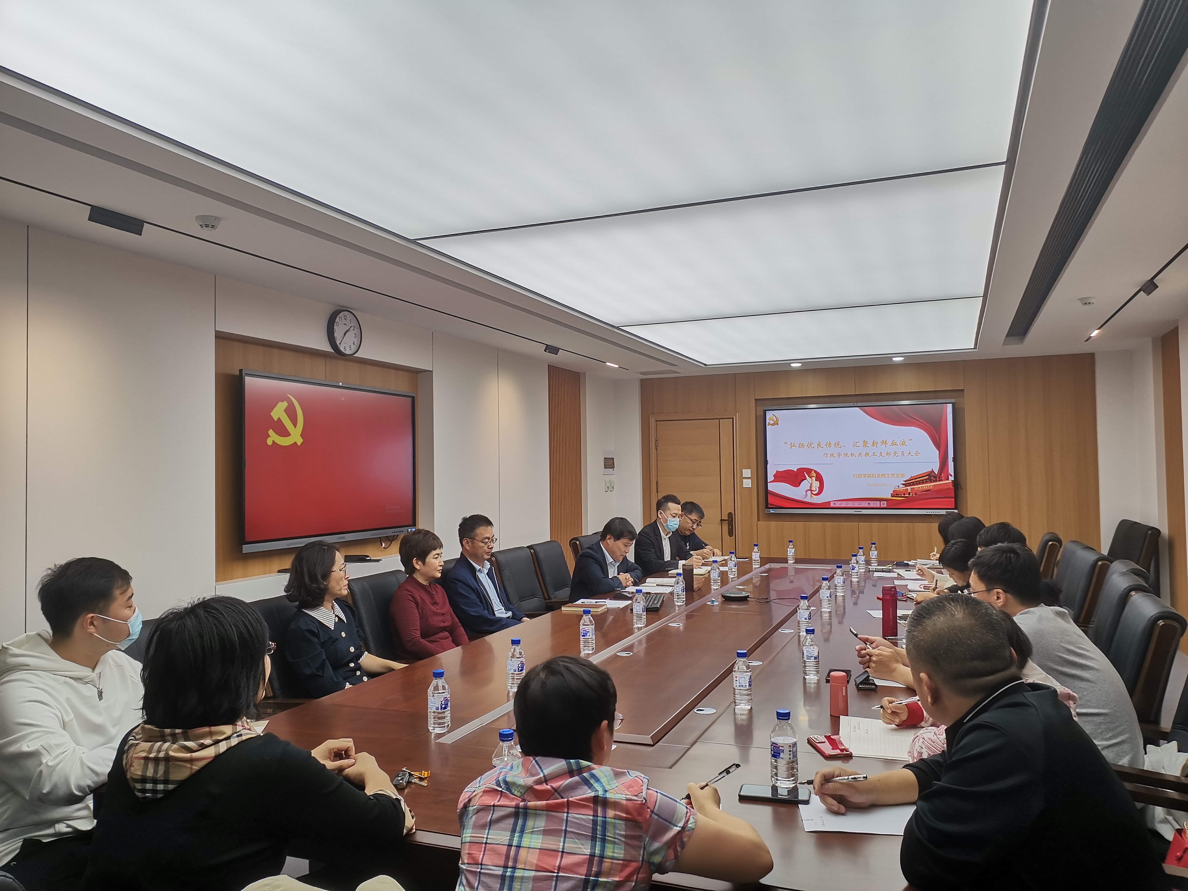在东荣大厦A307会议室举办“弘扬优良传统,汇聚新鲜血液”机关教工支部党员大会。副院长、机关教工党支部书记季洪涛主持会议。