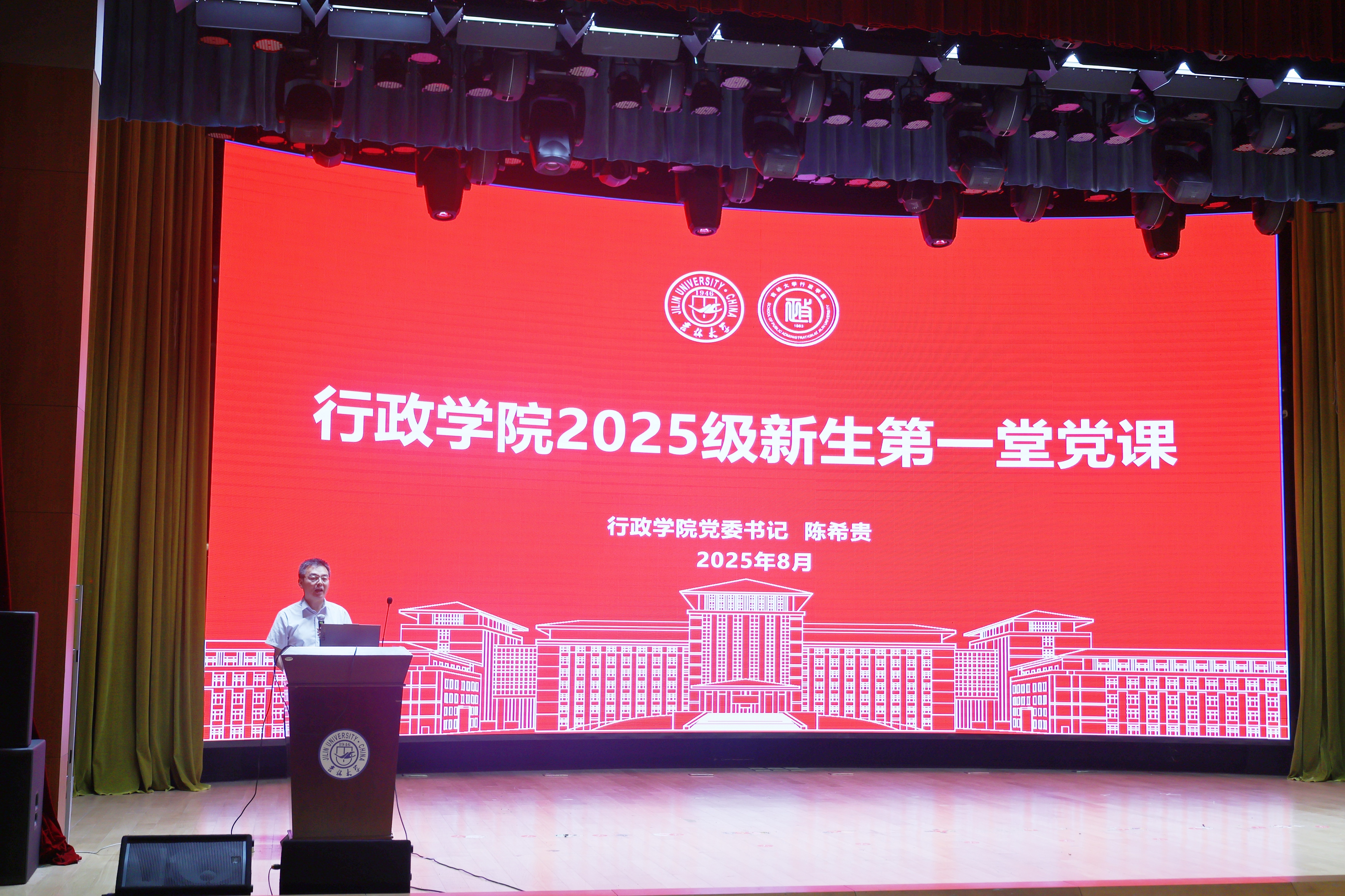 党委书记陈希贵为新生讲授开学第一节党课,学院2025级研究生、本科生到场,共上入学后的第一节党课。