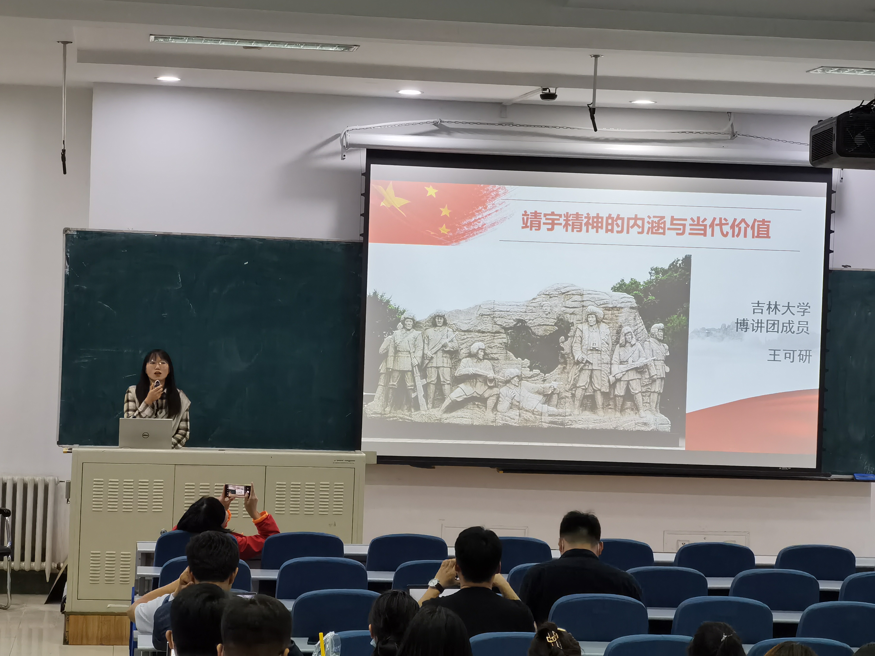 党课宣讲中,王可妍博士从“杨靖宇生平”、“杨靖宇精神的内涵”和“杨靖宇精神的当代价值”三个方面展开,对“靖宇精神”的内涵和当代价值进行了详细的讲解。课程伊始,王可妍博士先为大家播放了杨靖宇将军的相关纪录片,使大家对杨靖宇不凡的一生有了直观而深刻的了解;其后,她为大家详细介绍了“靖宇精神”的六大内涵,即忠贞报国的爱国主义精神、矢志不渝的共产主义信念、视死如归的英雄主义精神、百折不挠的艰苦奋斗精神、首创首行的开拓创新精神以及团结战斗的国际主义精神。最后,她为我们阐释了杨靖宇精神在当代的价值。她指出,杨靖宇精神是东北抗联精神的重要组成部分,是一个完整的科学体系,也是中国共产党人革命精神谱系中最耀眼的精神之一。同时,她对吉林省如何发挥“抗联”精神的优势也提出了自己的见解。吉林省具有研究、传承、利用东北抗联资源的得天独厚的条件,吉林省应该在传承、弘扬东北抗联精神方面做出榜样,形成自己的独特品牌。