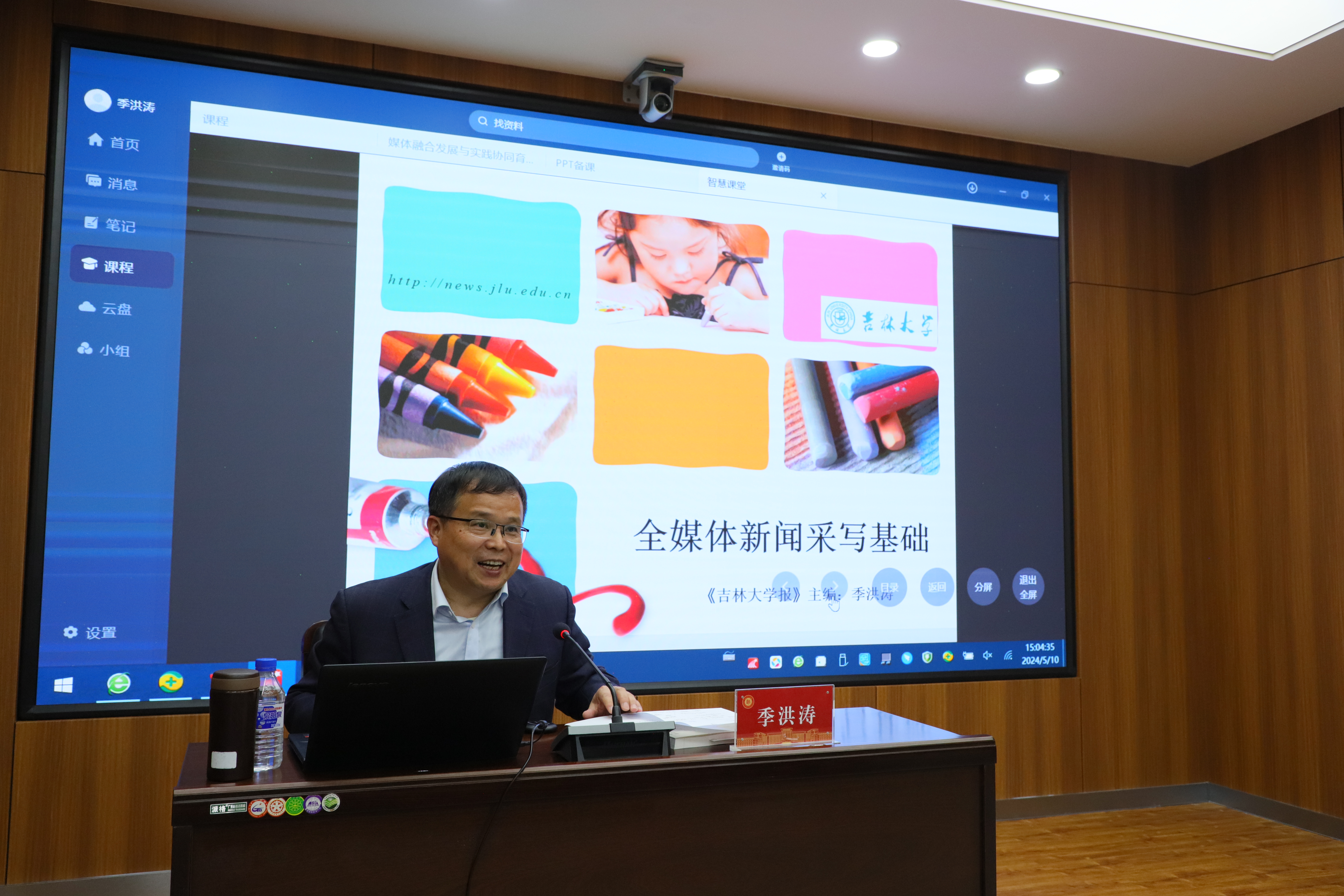 季洪涛围绕“什么是新闻作品、如何撰写新闻作品、如何写出高质量新闻作品”三个问题展开。季洪涛强调做新闻写作要“深入实际,避免空谈”,在撰写消息、通讯等新闻作品,采访都是一切写作的基础,并希望同学们认真学习相关知识,为学院及自身发展汲取力量。