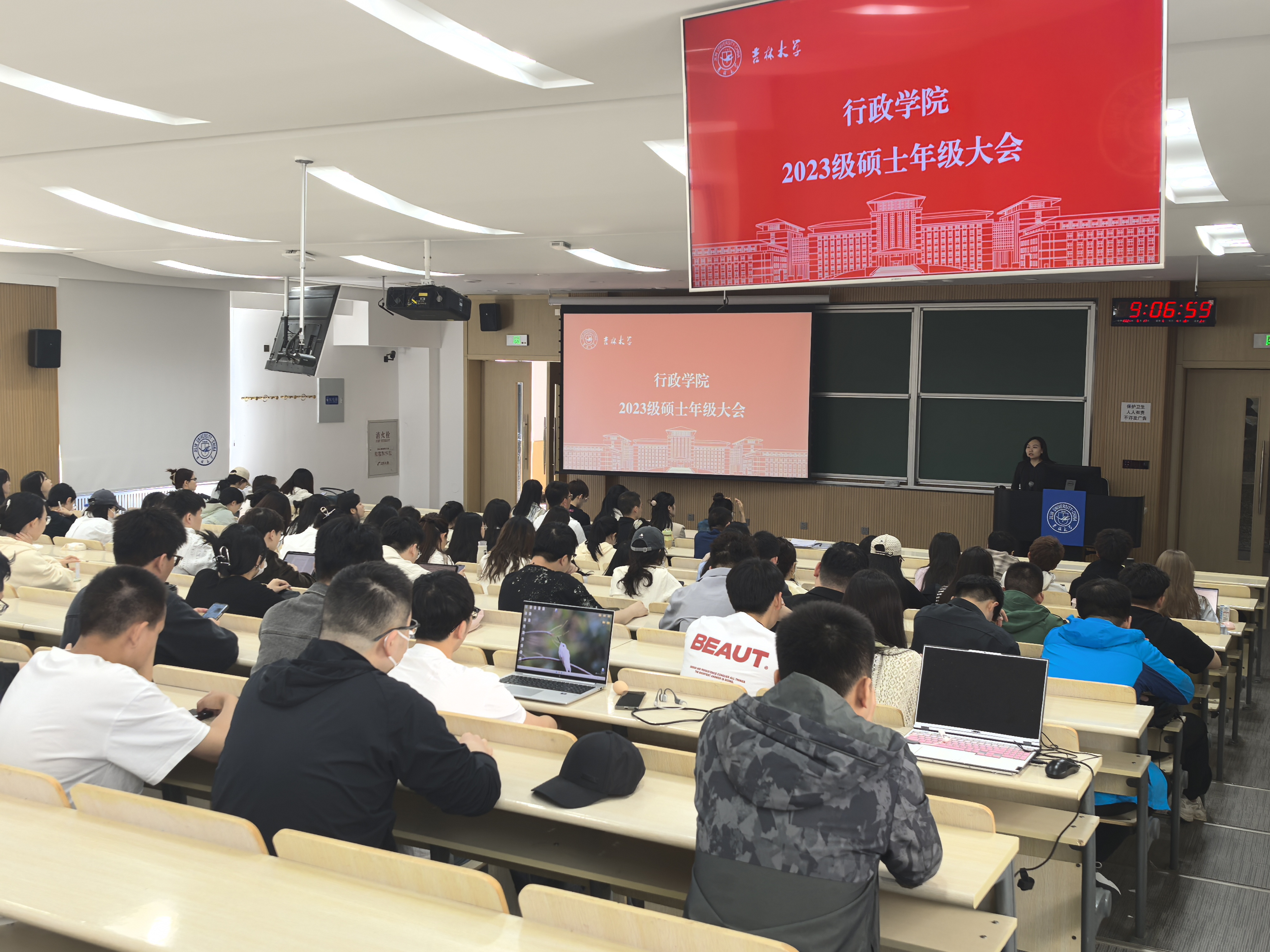 于逸夫教学楼十三阶召开2023级硕士研究生年级大会及就业指导会,研究生辅导员高琛老师、研究生教学秘书宋佳晖老师及2023级全体硕士研究生参加会议。