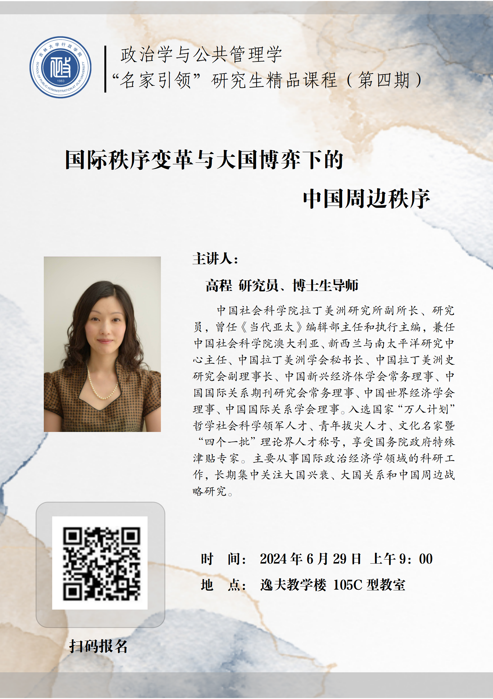 上一篇:【预告】政治学与公共管理学 “名家引领”研究生精品课程(第五期)