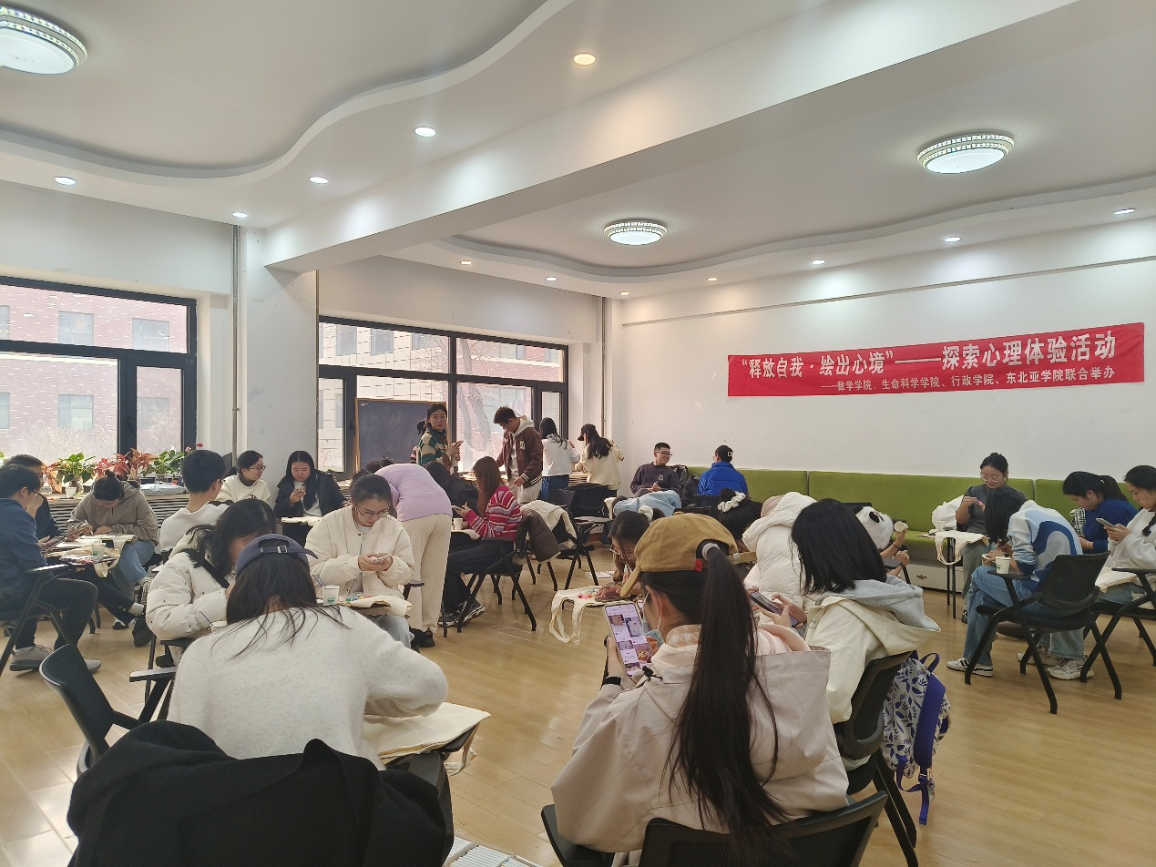、数学学院、生命科学学院以及东北亚学院四院联合举办的“释放心境,绘出自我”活动在麻豆