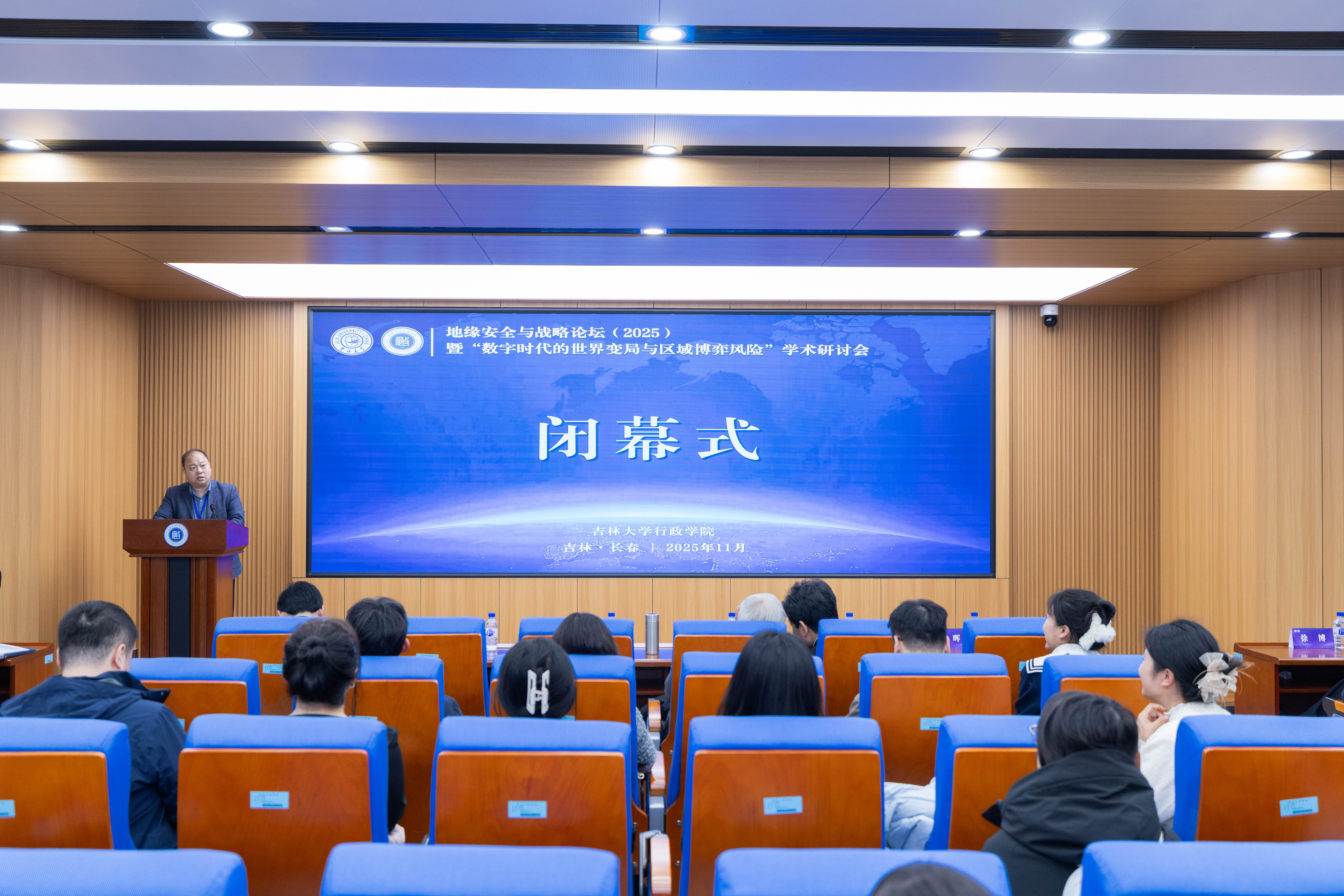 闭幕式上,郭锐教授做总结发言。他对与会嘉宾的积极参与和会务组的辛勤付出表示诚挚感谢,认为本次论坛主题鲜明、议题紧凑、内容丰富、讨论热烈。不仅促进了跨学科、跨区域的学术交流,也深化了学界对地缘安全新动态、新逻辑与新风险的系统认知,为地缘安全与战略研究提供了新的契机和动力。本次论坛在与会嘉宾和师生们的热烈掌声中圆满落幕!