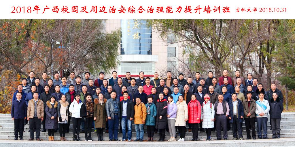 承办的“2018年广西校园及周边治安综合治理能力提升”培训班在长春海航紫荆花饭店成功举行,培训学员是来自广西十五个地区的教育、政法系统的公务员,共计83人。