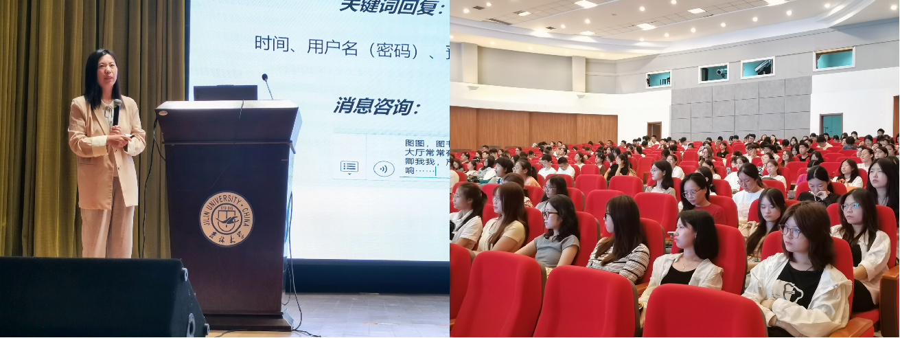 图书馆王丽丽老师为本研新生共同授课。讲座中,王丽丽从图书馆馆藏资源分布、图书借还流程规范、电子数据库检索方法、学术期刊查找技巧等方面细致讲解,现场实操演示如何通过图书馆官网、移动客户端获取学术资源,帮助新生熟练掌握获取图书资源的技能,为后续专业学习与学术探索筑牢基础。