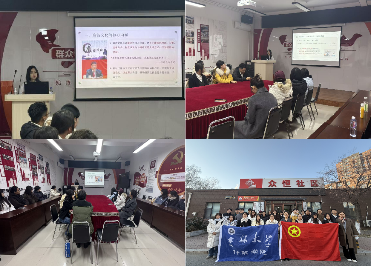 副教授、廉政研究院副院长郑倩,研究生工作办公室主任高琛、团委工作负责人曹烨、本科生辅导员迟瀛出席本次活动。师生代表一同参观众恒社区,社区讲解员围绕社区探索共建共治新路径的实践经验展开介绍。社区始终坚持“共治家”理念,整合辖区内多元力量,牵头成立共治家,吸纳辖区商铺、物业公司、社会企业、公益社会组织等,让大家共同为社区这个“大家庭”添砖加瓦。廉政研究院宣讲团成员王琦以长春新区“五廉驿站”的经验为代表,深入讲解廉洁文化的三维作用机制,助力社区廉洁文化阵地建设,得到社区工作者们的认可。