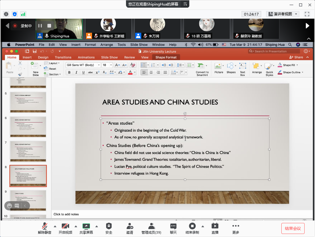 主办的国际事务工作坊第7期学术活动于在线平台举行。本次讲座邀请美国路易斯维尔大学教授华世平(HUA Shiping)担任主讲嘉宾,作了题为“What Went Wrong with China Studies? – Paradigms Shifts in the Field”的在线学术讲座。学院政治学系副教授朱万润担任主持人,近40名学院师生参与讲座。