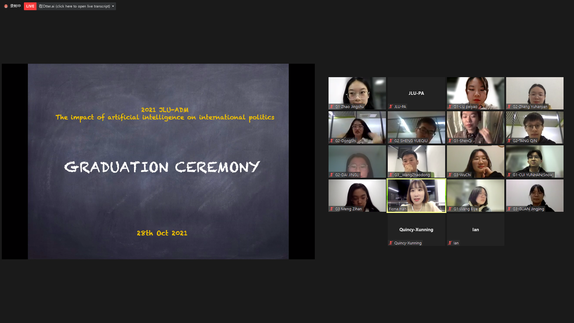 很荣幸参与了此次剑桥线上课的交流活动并获得了最佳个人表彰,我所在的小组“The terminators”也荣获了最佳小组。此次以人工智能为主题的讲授交流使我在学术方面受益匪浅,教授充分了解了人工智能通过其出众的数据分析预测能力在当前国际政治中产生举足轻重的影响,同时也向我们展示了未来AI积极或消极的可能性;而课程的另一大特色就是全英授课,在最初的一两节课虽然只是一知半解但在逐渐习惯之后便听得津津有味了,甚至可以在homework question的部分与和蔼可亲的教授进行积极地沟通互动,因而英语口语与听力也都有一定提升;学到最多的则是在与师哥师姐及外校的同学作为同一个小组的过程中,我们对课题的分工负责,统一整合中不断磨合,从最初的破冰到最后的亲密合作并一举拿下最佳小组,真的是一次很棒的体验!