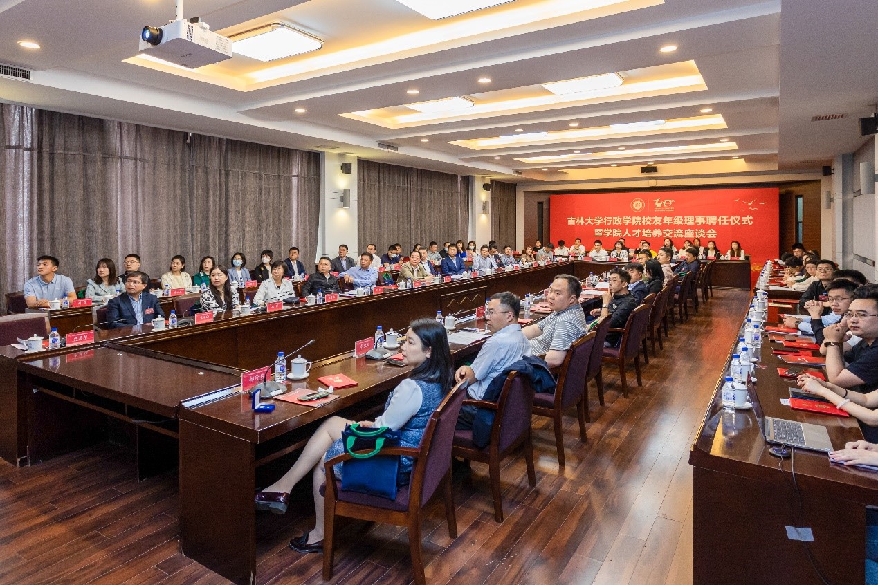 2023年是吉林大学政治学学科恢复重建暨行政学院成立40周年,为提升学院人才培养质量,促进行政学院各届毕业生的交流和沟通,增强广大院友归属感,2023年5月27日,吉林大学行政学院举办校友年级理事聘任仪式暨学院人才培养交流座谈会,吉林大学校友和基金办公室副主任尹彪、吉林大学行政学院院长张贤明、党委书记陈希贵、党委副书记史慕华、副院长季洪涛、行政学院教工代表、各年级校友理事代表参加座谈会。座谈会由行政学院党委副书记史慕华主持。