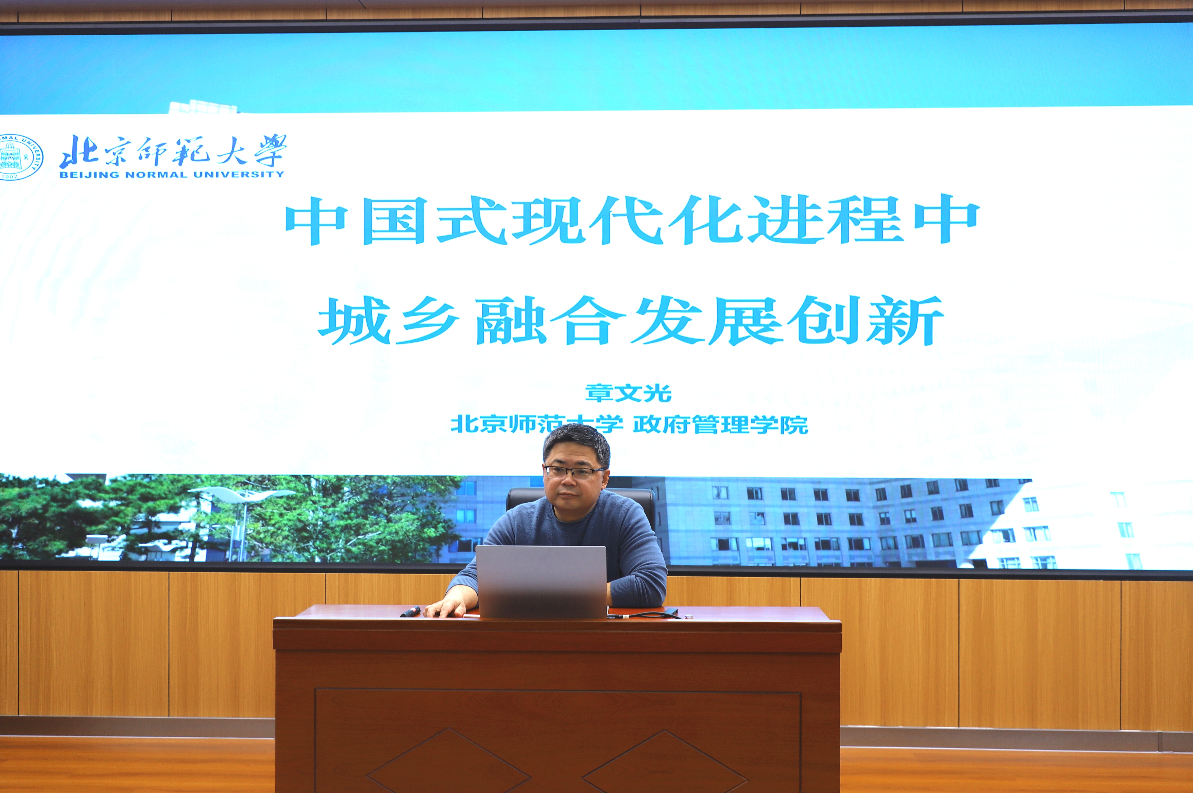 名家讲座(第33期)在东荣大厦B102报告厅举行,北京师范大学二级教授、政府管理学院院长、国家哲学社会科学领军人才章文光受邀担任主讲嘉宾,作题为“中国式现代化进程中城乡融合发展创新”的学术演讲。学院公共管理系董伟玮教授,李慧杰副教授,常成副教授,讲师施响及院内外60余名同学参与讲座。讲座由学院副院长刘雪华教授主持。