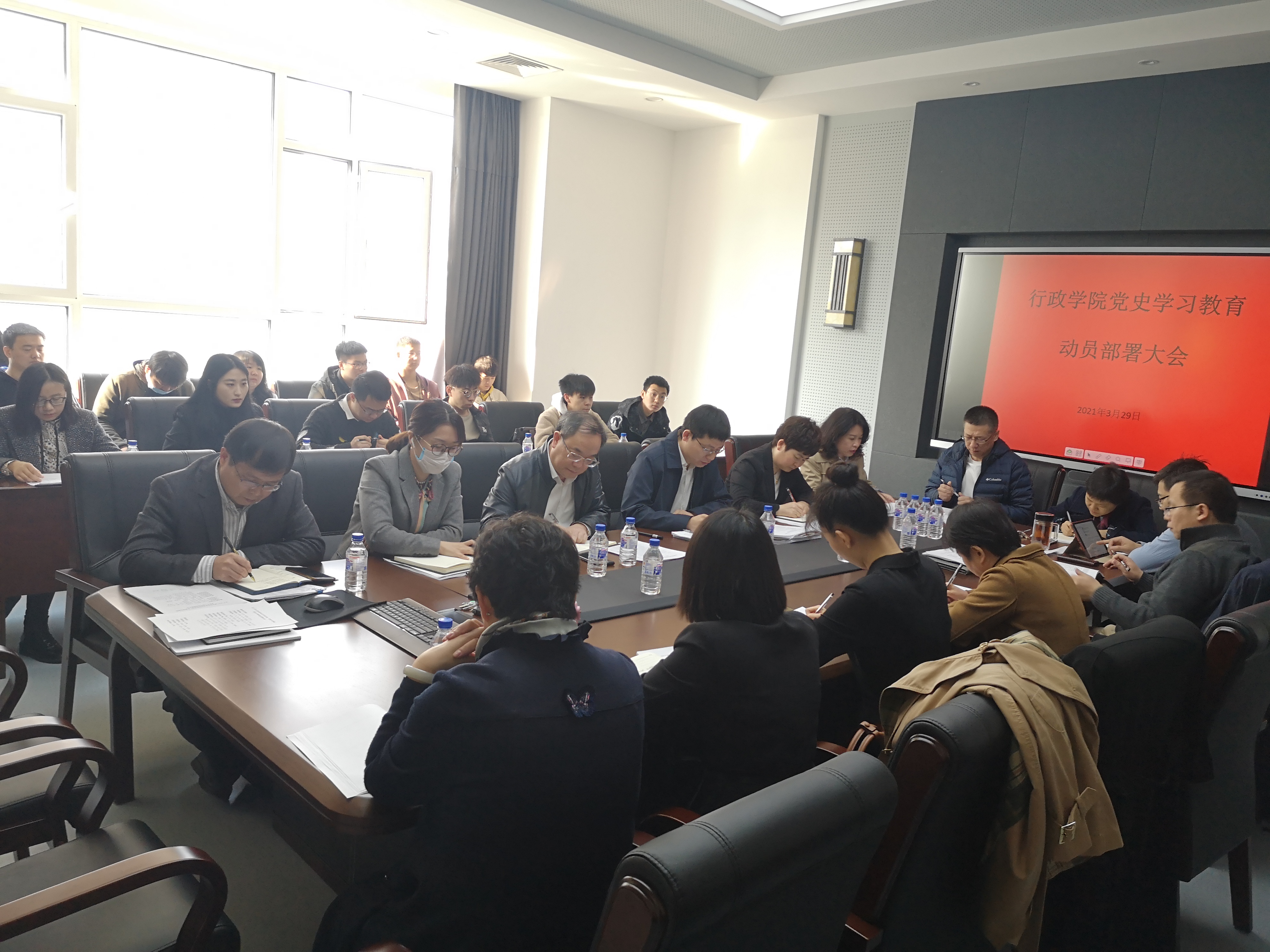 在东荣大厦B302会议室召开党史学习教育动员部署大会。学院领导班子成员、党委委员、系主任、党支部书记及部分师生党员代表参加了本次会议。党委书记马景惠做动员部署讲话,会议由院长张贤明主持。
