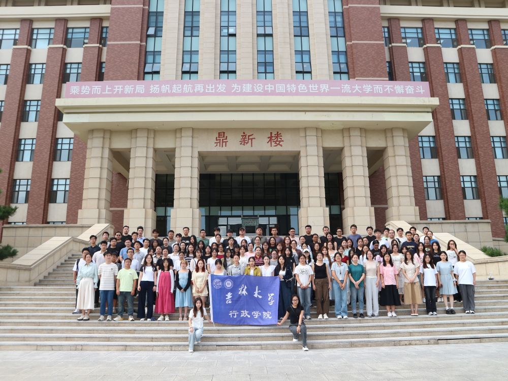 随后,同学们依次游览了校园内的多个标志性建筑和景观。在宏伟现代的鼎新楼前,大家了解了其作为学校行政中枢和重要活动场所的功能;途经李四光楼、吕振羽楼、法学楼等教学科研楼宇,体会到了吉大学术环境的庄重与深厚;穿过清湖湖畔,大家漫步于绿荫碧水之间,感受校园宁静优雅的自然环境;在宋志平体育馆、日新楼等功能丰富的场所,同学们表达了对未来课余生活的便利性与多样性的期待。最后,队伍行至五月花广场合影留念。